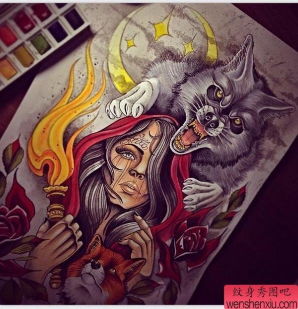 一组18张漂亮的欧美newschool动物纹身手稿图案