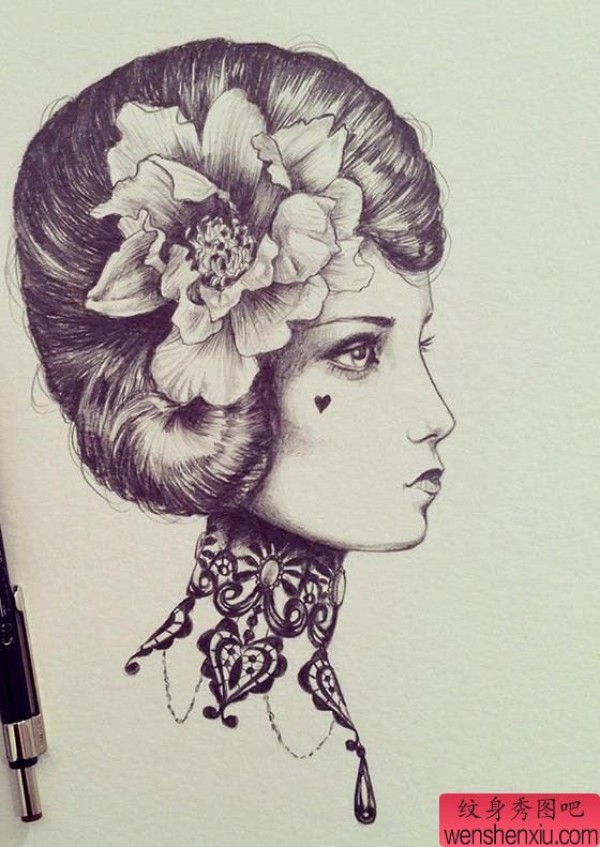 纹身图吧分享一张女郎文身手稿作品