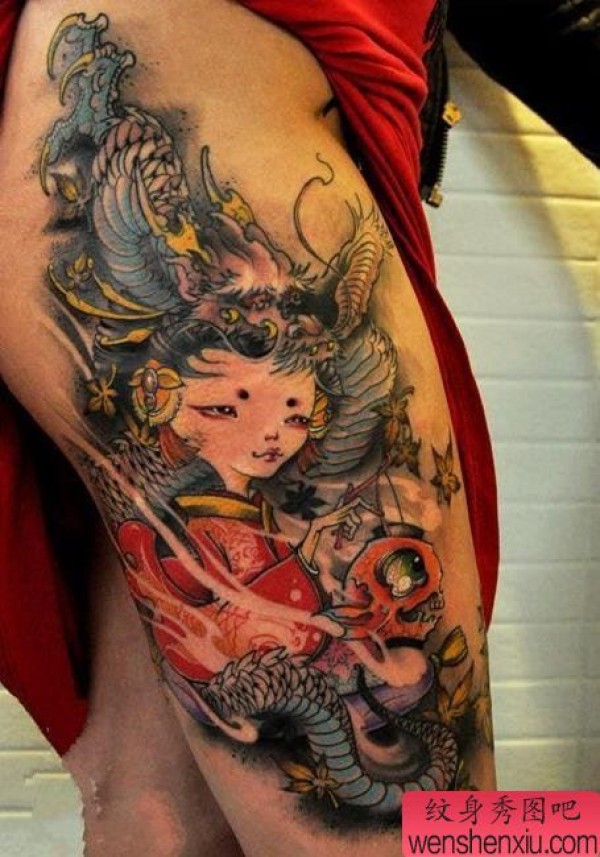 传统花腿纹身--18张传统风格的大花腿纹身图案作品