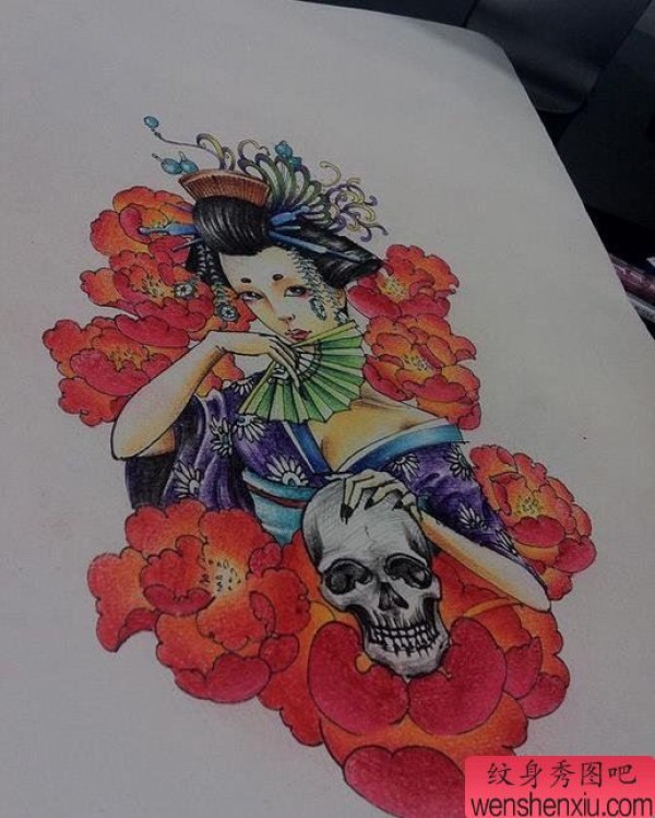 能面万媚纹身手稿_52张日式能剧面具纹身手稿图案素材欣赏