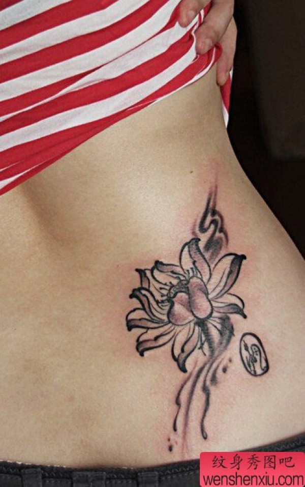 女性腰部莲花花纹刺青_腰部纹身图案大全_纹身图吧