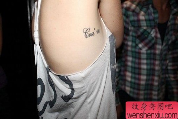 女生后腰纹身黑白灰风格抽象线条纹身图案