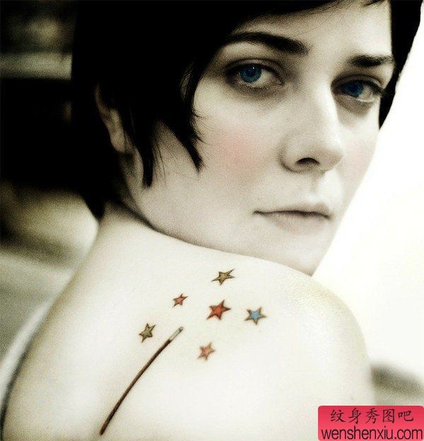 女生肩部小星球纹身_肩部纹身图案大全_纹身图吧