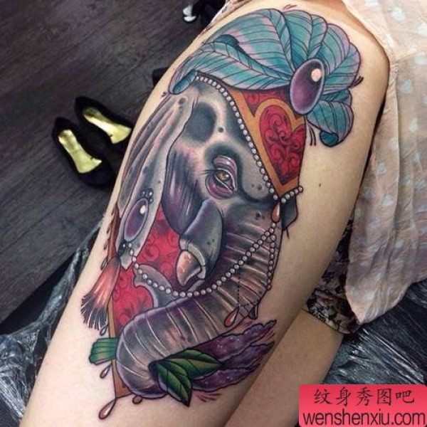小腿上一款大象纹身图案_腿部纹身图案大全_纹身图吧