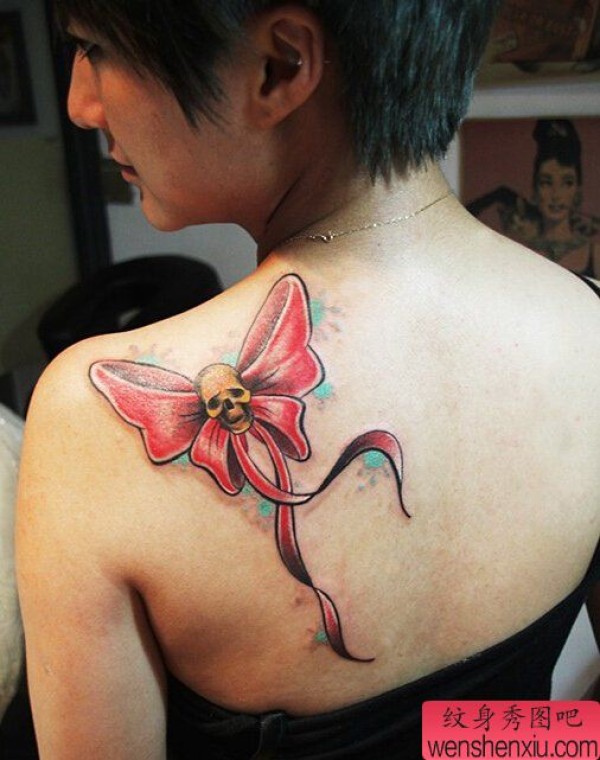 女生肩花纹身_15张女性双肩对称的肩花纹身图案作品图片