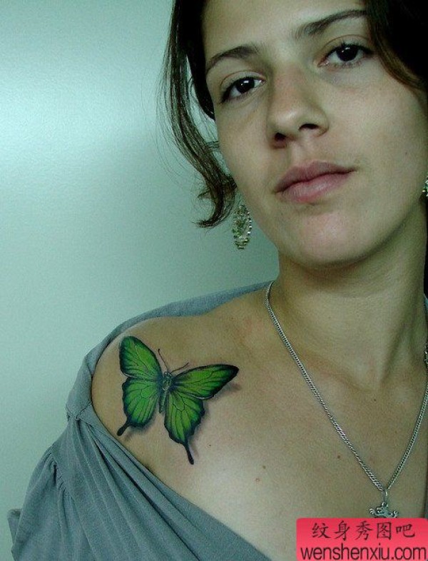 小清新女性肩部蝴蝶文身作品