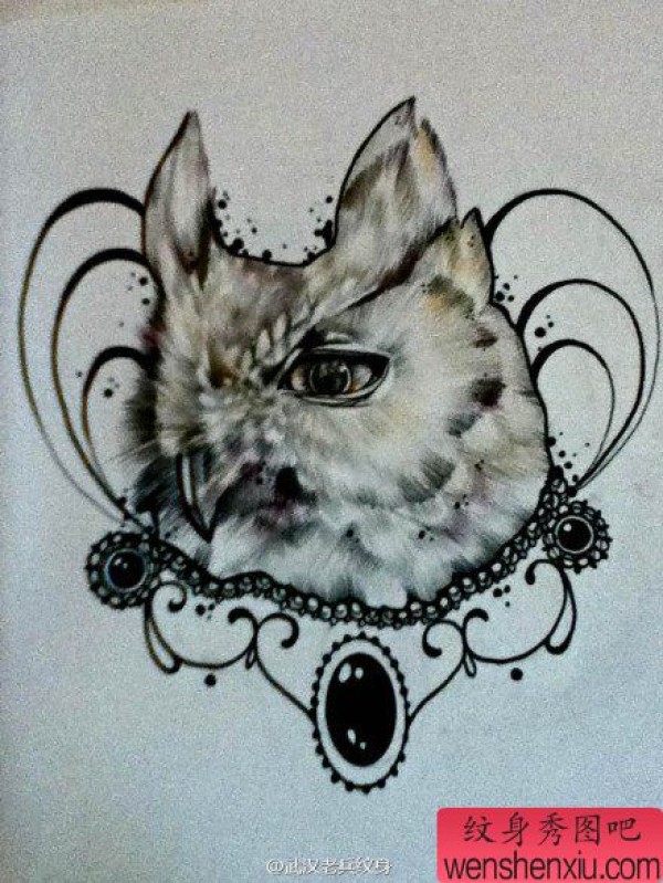 纹身图吧分享一张代表智慧的猫头鹰文身作品