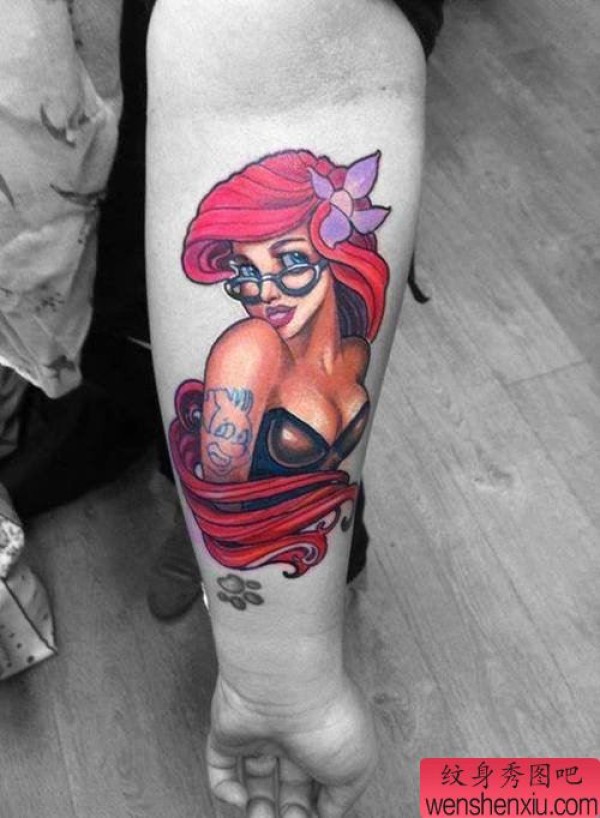 手臂彩色女郎文身作品