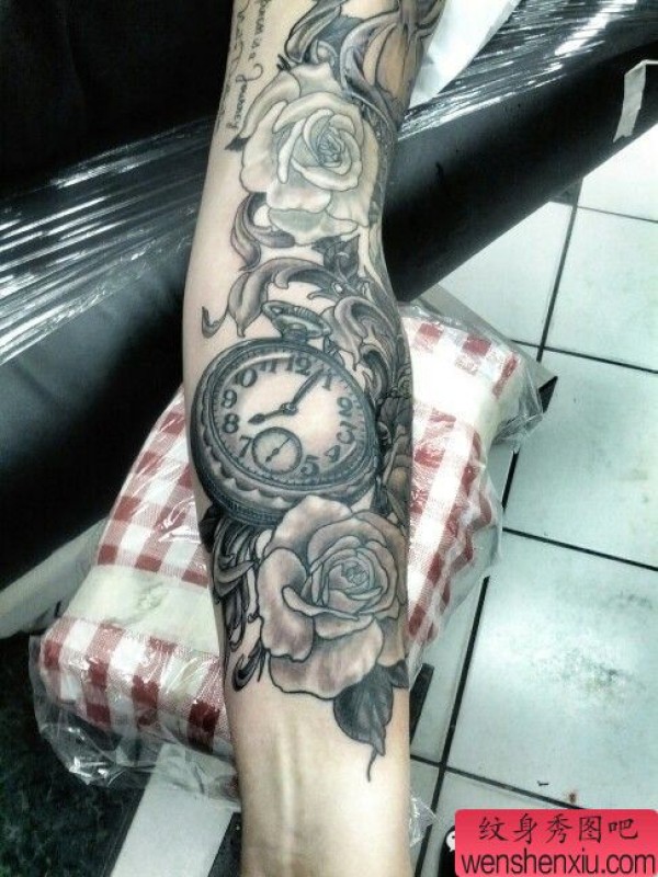 纹身图吧分享一套好看的创意怀表文身作品