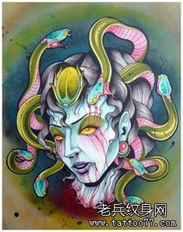 一套蛇发女妖美杜莎文身手稿作品由文身分享