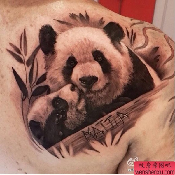 肩部国宝熊猫文身作品