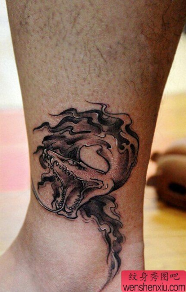 脚踝虚化蛇文身作品