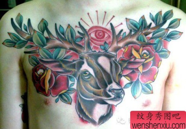 一套胸口创意彩色鹿文身作品由文身分享
