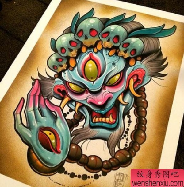 能面万媚纹身手稿_52张日式能剧面具纹身手稿图案素材欣赏