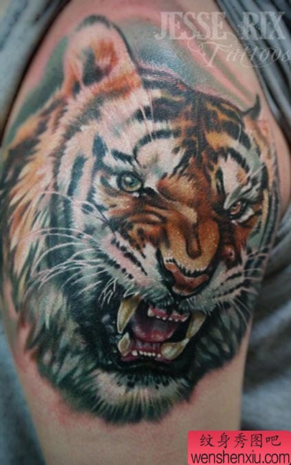 霸气半胛老虎纹身_动物纹身图案大全_纹身图吧