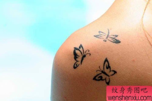 小清新女性肩部创意蝴蝶文身作品