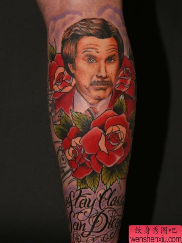 纹身图吧分享一张手臂人物玫瑰文身作品