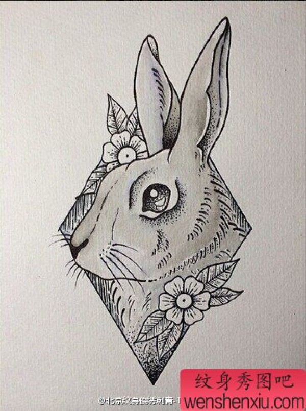 素描兔子文身作品由纹身图吧分享
