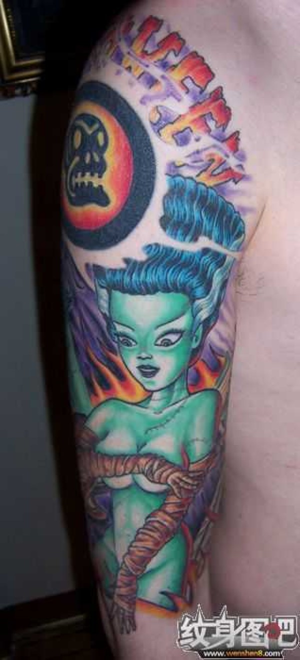 复古卡通红唇美女手臂纹身_卡通纹身图案大全_纹身图吧