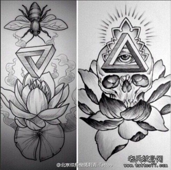 上帝之眼骷髅莲花文身手稿作品由文身分享