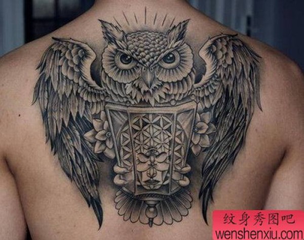 女生后腰纹身黑白灰风格抽象线条纹身图案