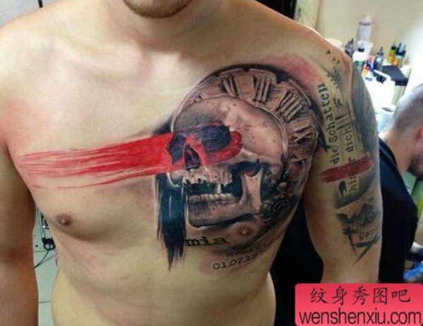 胸口欧美骷髅文身作品