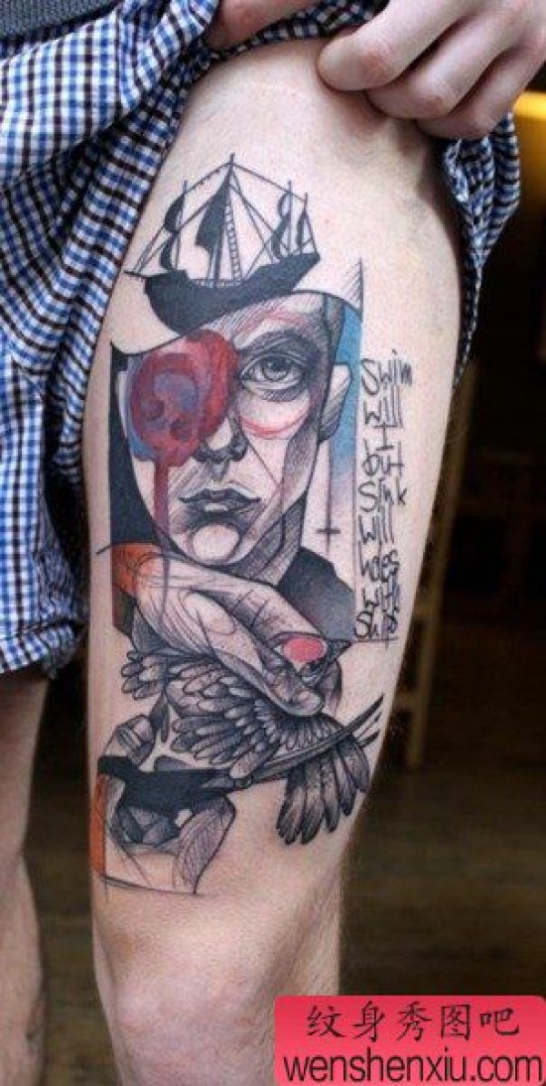 女孩腿部唯美刺青_腿部纹身图案大全_纹身图吧