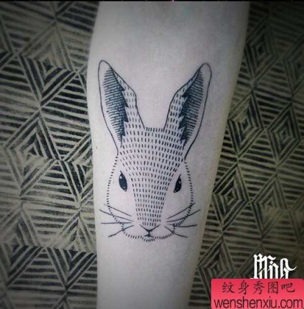 一张抽象兔子文身作品由纹身图吧分享