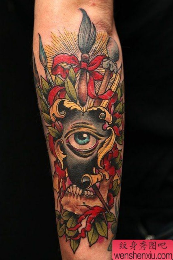 手臂彩色欧美上帝之眼文身作品由纹身图吧分享