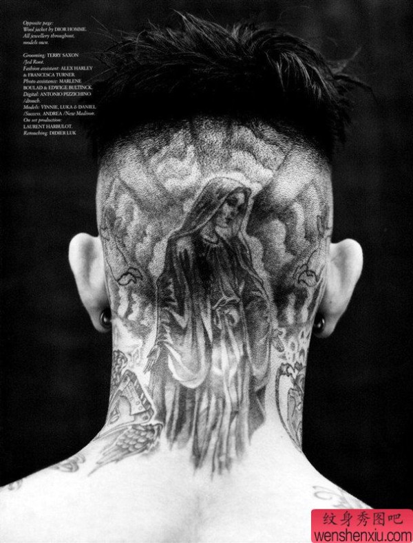 纹身图吧分享一张头部圣母玛利亚文身作品
