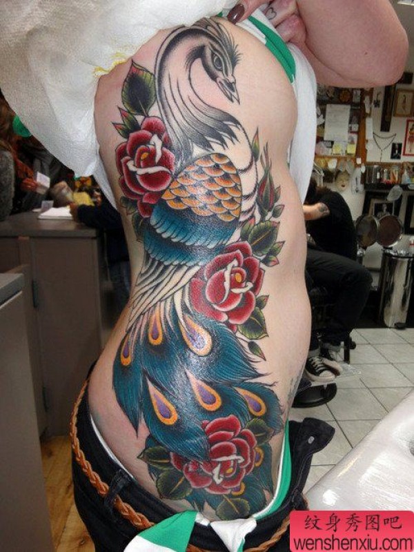 分享一款腰部时尚性感的蝶恋花纹身图案_腰部纹身图案大全_纹身图吧