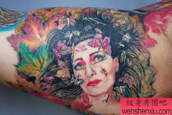 手臂蝴蝶女郎文身作品由纹身图吧分享