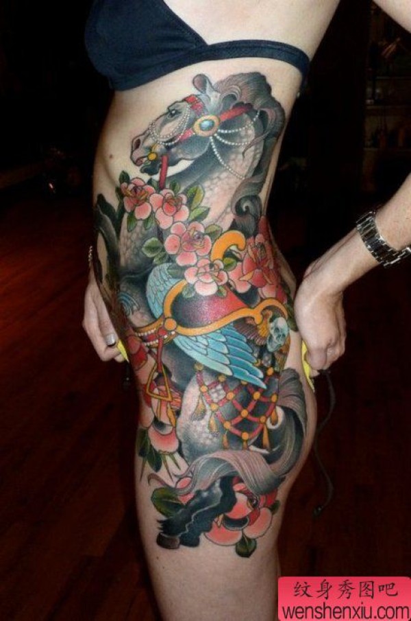 分享一款腰部时尚性感的蝶恋花纹身图案_腰部纹身图案大全_纹身图吧
