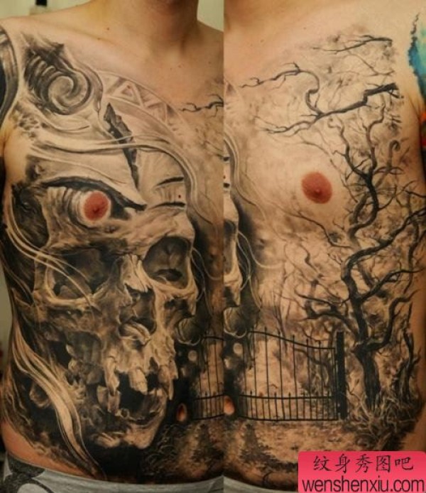 最好的文身馆分享 一张胸口骷髅文身作品