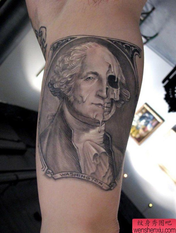 纹身图吧分享一张手臂欧美人物肖像文身作品