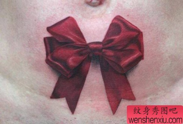 纹身图吧分享一张腹部蝴蝶结文身作品