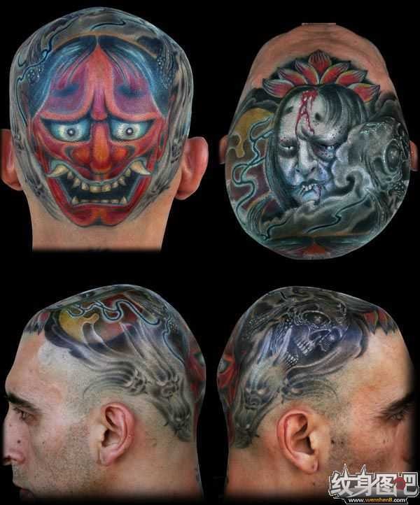 霸气男头部时尚纹身图片_头部纹身图案大全_纹身图吧