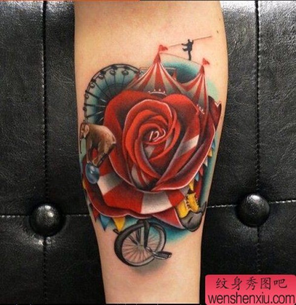 纹身图吧分享一张彩色欧美玫瑰花文身作品
