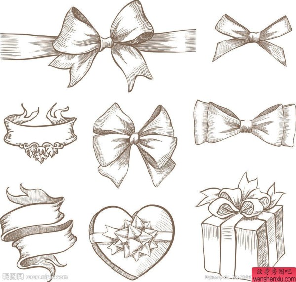 一套可爱的蝴蝶结文身作品由纹身图吧分享