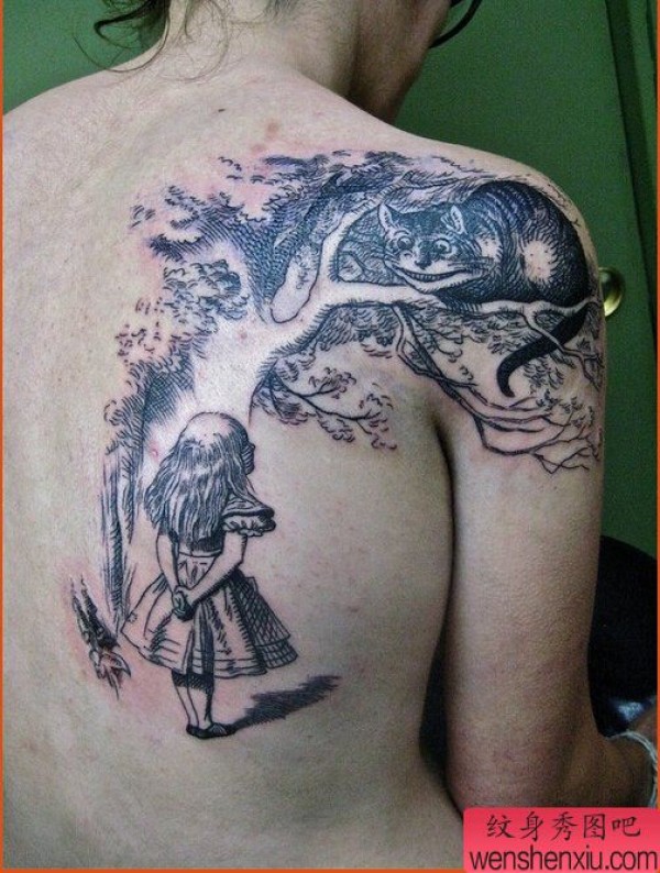 女生肩花纹身_15张女性双肩对称的肩花纹身图案作品图片