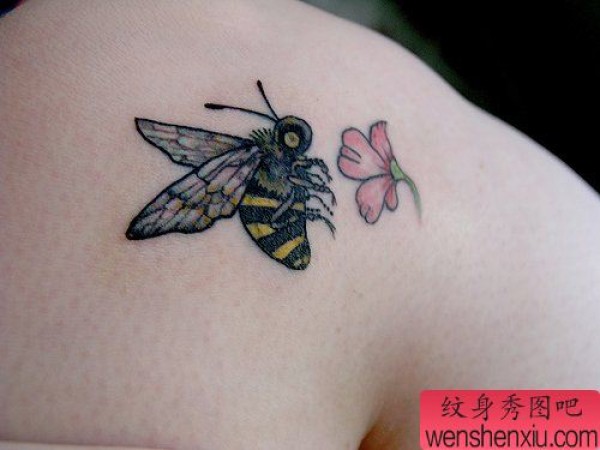 女生肩花纹身_15张女性双肩对称的肩花纹身图案作品图片