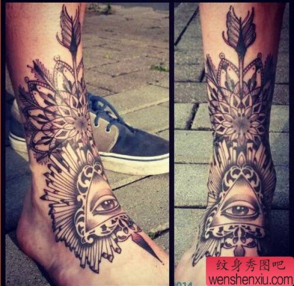 脚背梵花上帝之眼文身作品由纹身图吧分享