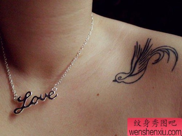 纹身图吧分享一张女性肩部燕子文身作品