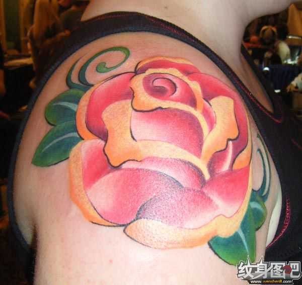 后肩唯美花藤英文图案图片_植物纹身图案大全_纹身图吧