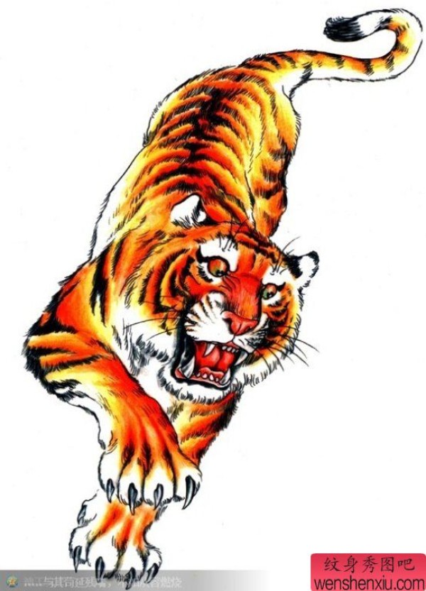 纹身图吧分享一张彩色老虎文身作品