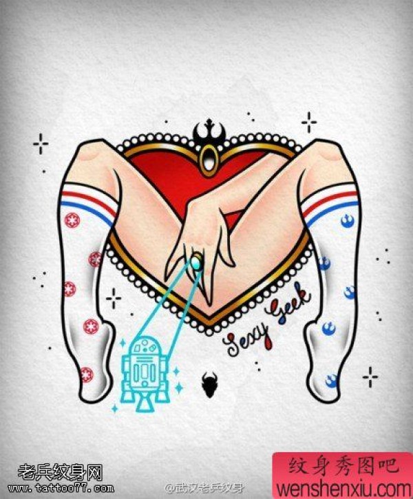 纹身图吧分享一套爱心屁屁文身手稿作品