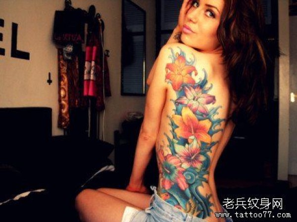 tattoo girl背部花文身作品
