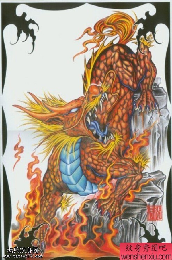 龙纹身手稿_一组老传统黑灰龙手稿纹身图案