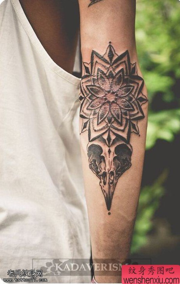 一张手臂羚羊梵花文身作品由纹身图吧分享