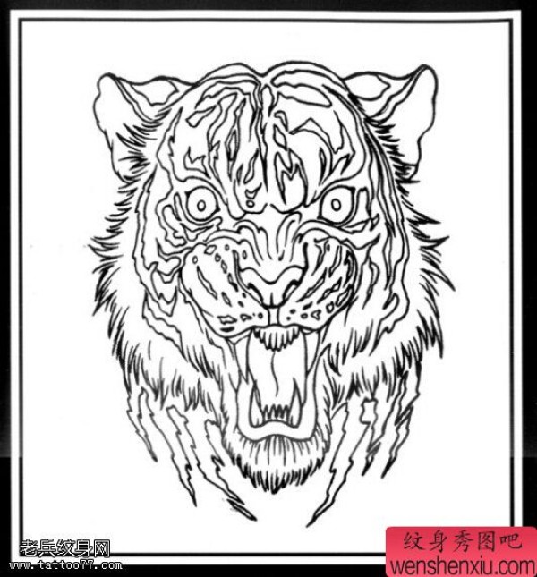 纹身图吧分享一张老虎头文身手稿作品